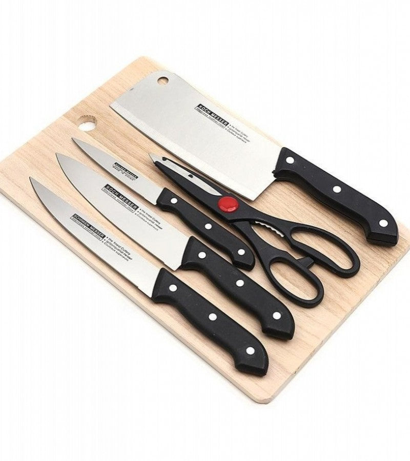 Steel Blade Knife Set With Cutting Board- 6pcs Steel Blade Knife Set With Cutting Board- 6pcs Steel Blade Knife Set With Cutting Board- 6pcs