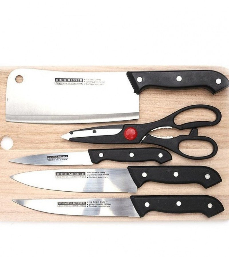 Steel Blade Knife Set With Cutting Board- 6pcs